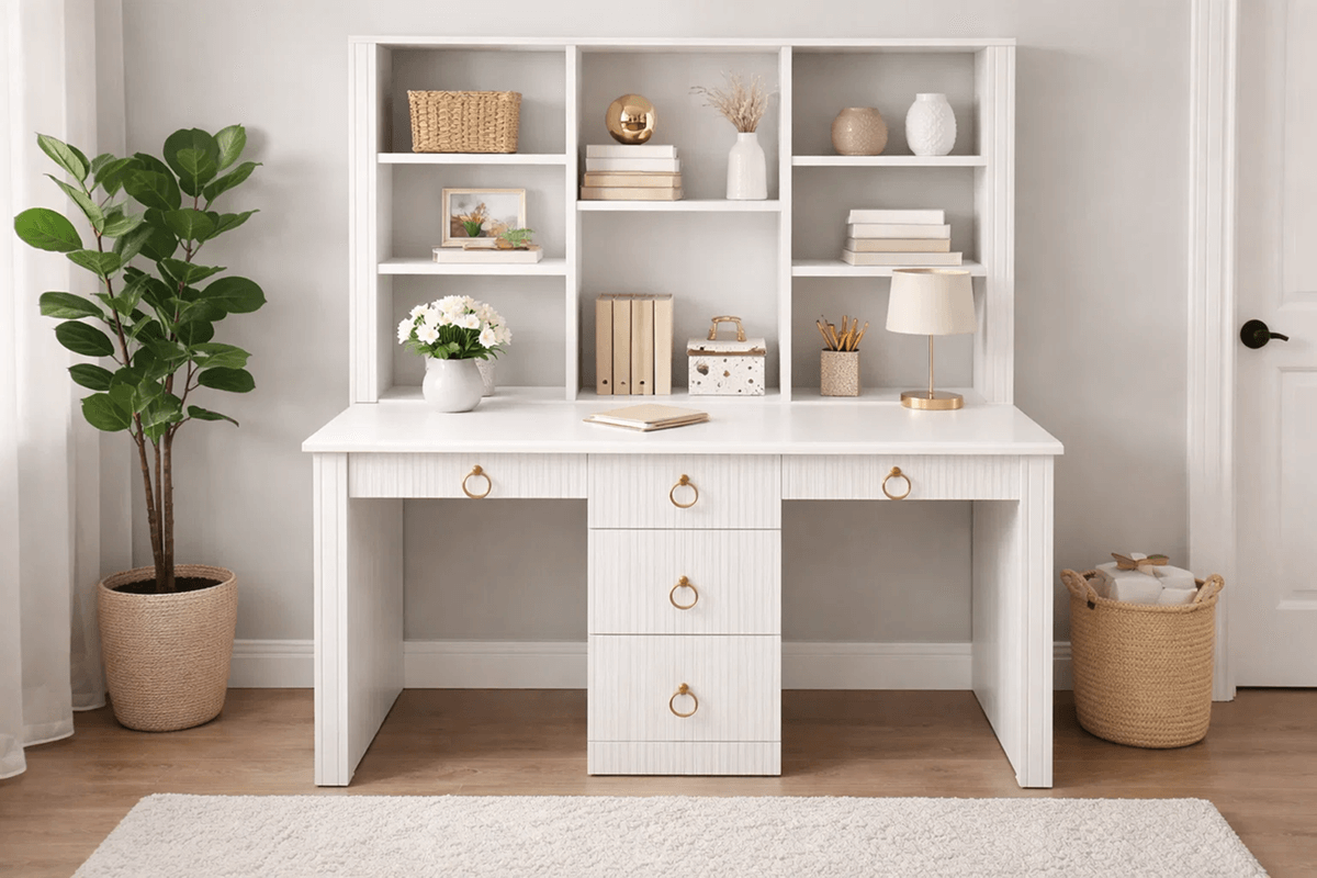 Компьютерный стол №3 от фабрики "Ключ" — стильный и практичный стол с полками и ящиками. Подходит для дома и офиса. Доступен в белом, сером и бежевом цвете. Отрадненский район.