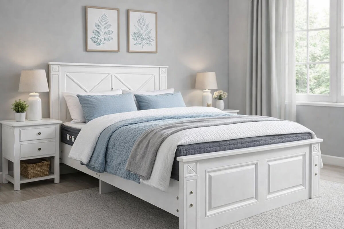 Кровать «Бьянка» — это утончённый стиль с выразительными декоративными вставками, которые создают атмосферу благородства и уюта. Отлично впишется в спальню в светлых тонах, а белое и серое исполнение добавят воздушности интерьеру. Подходит для тех, кто хочет сделать акцент на гармонии и симметрии.