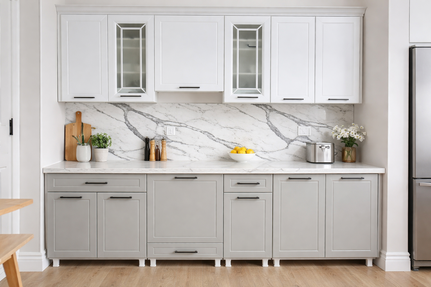 Кухонный гарнитур «Астра» от фабрики "Ключ" сочетает в себе строгость классических форм и современные материалы. Эмалевые фасады, доводчики, столешница 26 мм и лаконичный декор делают эту модель практичным и стильным решением для кухни в доме или квартире.