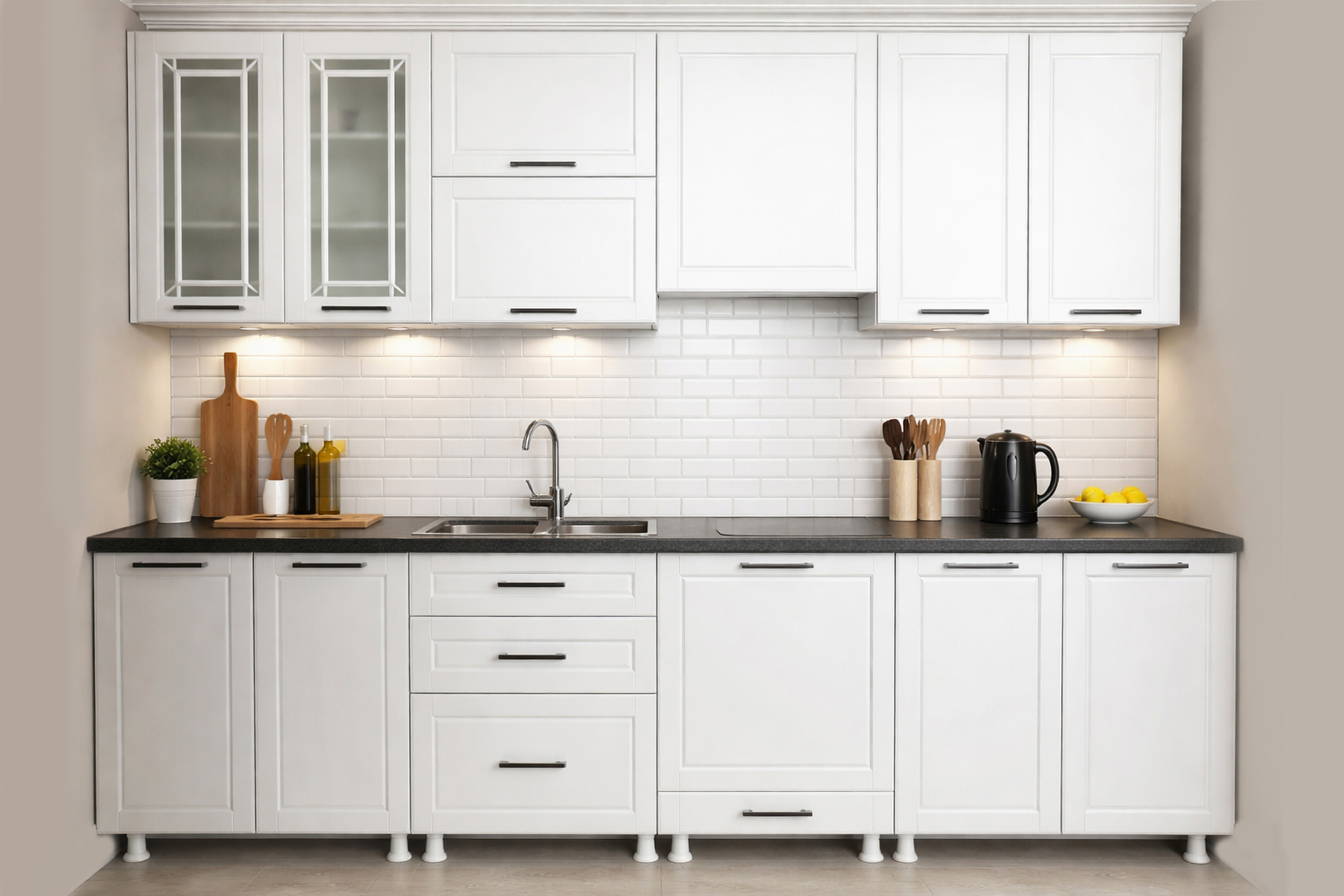 Кухонный гарнитур «Лондон» — это сочетание классического дизайна и современной функциональности. Элегантные белые фасады, стеклянные витрины и качественная фурнитура создают стильный и практичный интерьер. Подходит для просторных кухонь и адаптируется под индивидуальные размеры.