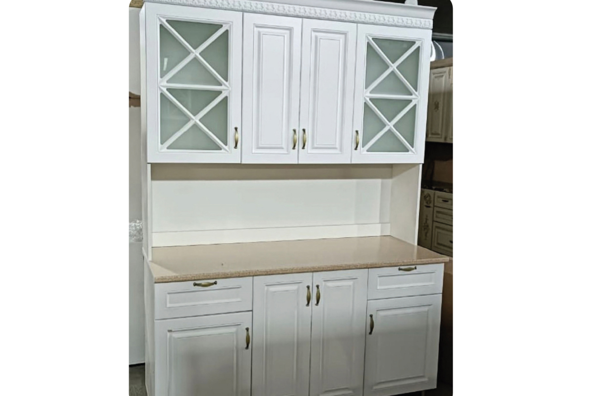 Посудный шкаф «Бьянка» от мебельной фабрики "Ключ" — изящная белая модель с витражными фасадами, идеально подходящая для классического интерьера. Функциональный, вместительный и выполнен с вниманием к деталям — отличный выбор для современной кухни.