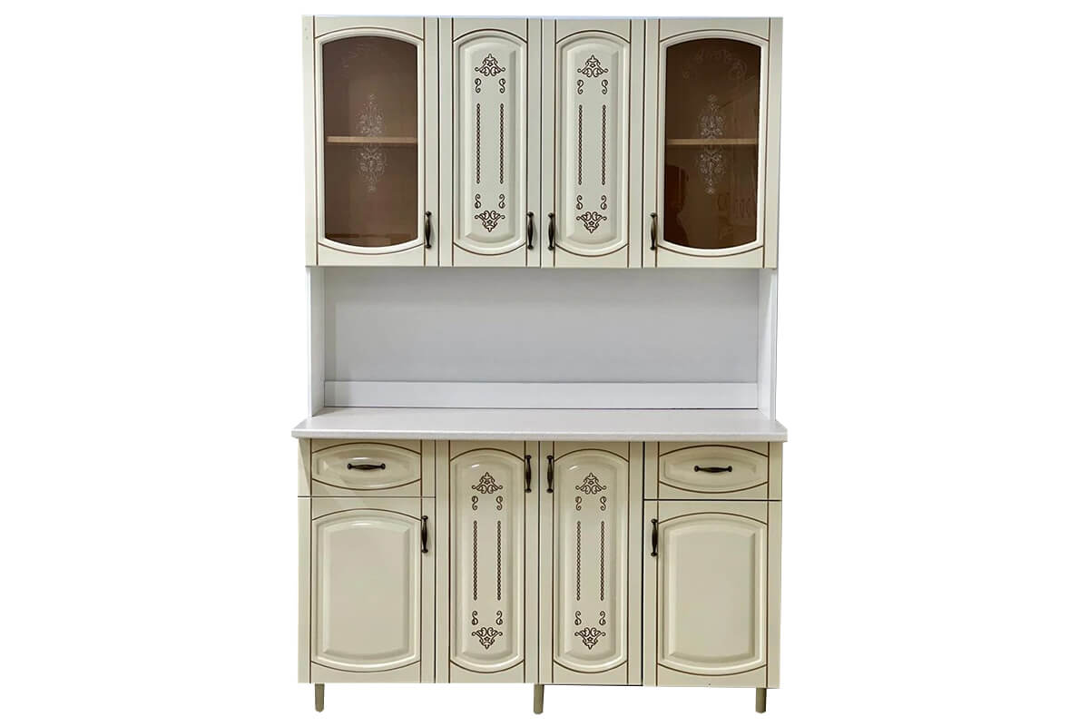 Посудный шкаф «Лилия» — классическая модель от мебельной фабрики "Ключ", выполненная в светлых тонах с декоративной фрезеровкой. Компактный и вместительный, идеально подойдёт для хранения посуды и украшения кухни или столовой.